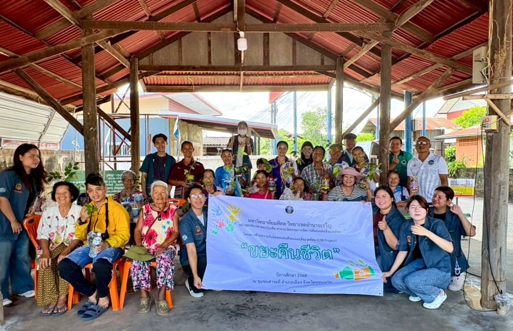 วันที่ 19 ตุลาคม 2568 ดร.สุริยา บุตรพันธ์ อาจารย์ประจำหลักสูตรศิลปศาสตรบัณฑิต สาขาวิชานวัตกรรมการจัดการสังคมและสิ่งแวดล้อม นำนักศึกษาชั้นปีที่ 4 จัดโครงการความรับผิดชอบต่อสังคมและสิ่งแวดล้อม (CSR Project) “ขยะคืนชีวิต” ณ ศาลาประชาคมชุมชน หมู่ที่ 8 ตำบลสาวะถี อำเภอเมือง จังหวัดขอนแก่น โครงการดังกล่าวจัดขึ้นเพื่อส่งเสริมการมีจิตสำนึกในการอนุรักษ์สิ่งแวดล้อม และสร้างคุณค่าจากวัสดุเหลือใช้ โดยมีกิจกรรมการนำขวดน้ำพลาสติกที่ถูกทิ้งแล้ว มาตกแต่งและประดิษฐ์ให้เป็นกระถางต้นไม้สวยงามผ่านศิลปะสร้างสรรค์ นักศึกษาและผู้เข้าร่วมกิจกรรมได้ร่วมกันออกแบบและลงมือผลิตด้วยตนเอง […]